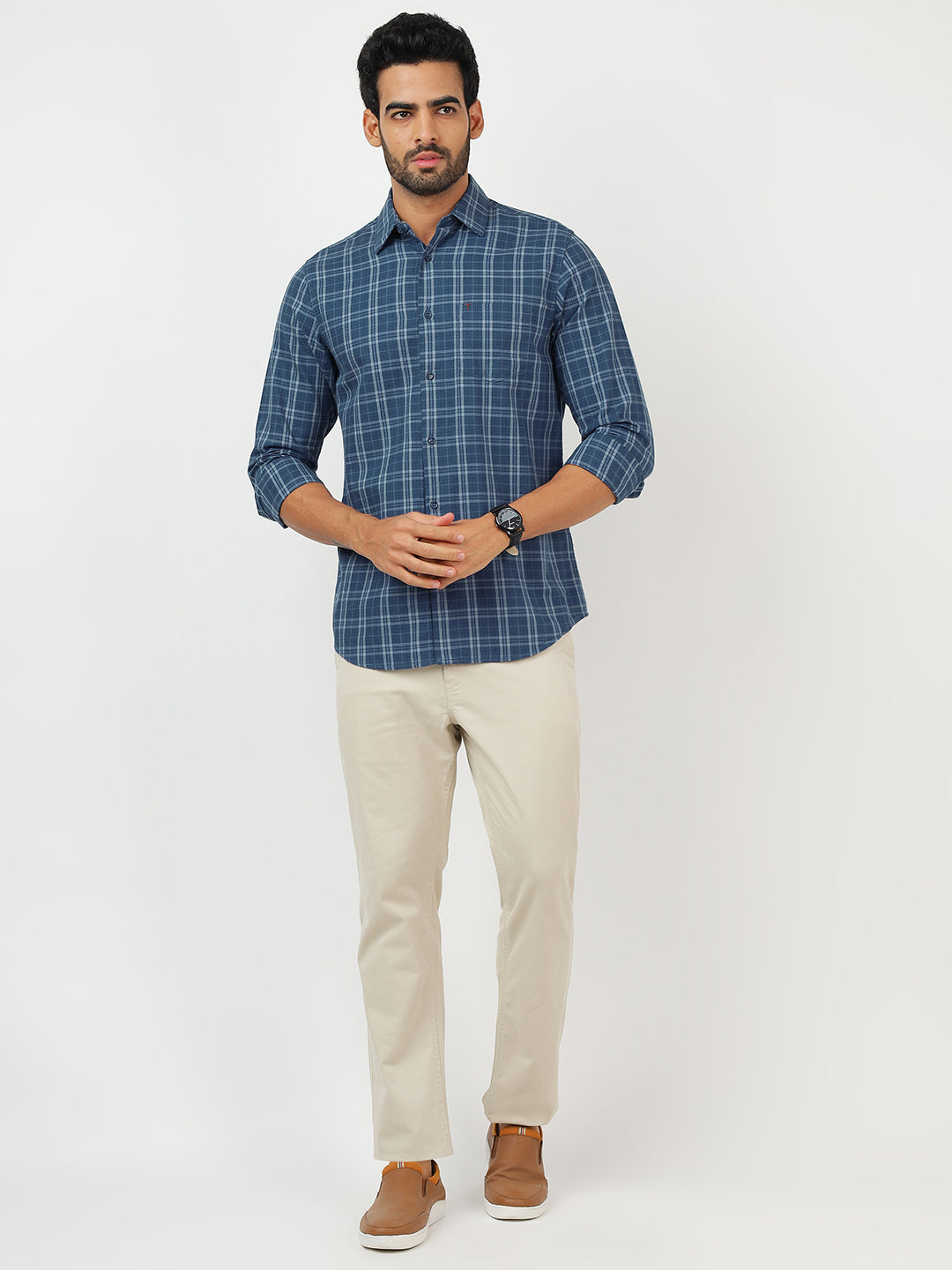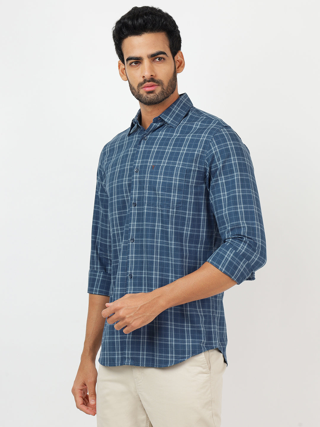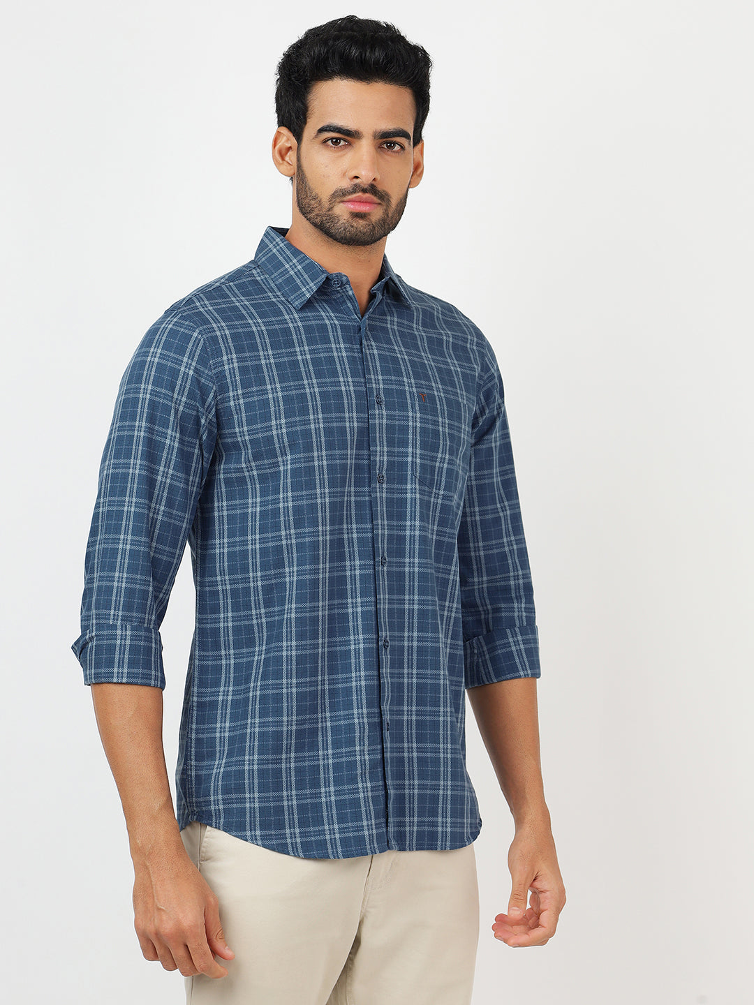 Enhance your collection with this elegant blue & white long-sleeve shirt. Made from 100% cotton, it provides superior comfort and breathability, ideal for effortlessly moving from professional office settings to stylish evening events. The timeless check design adds a touch of sophistication, ensuring you maintain a refined and fashionable appearance wherever you go.