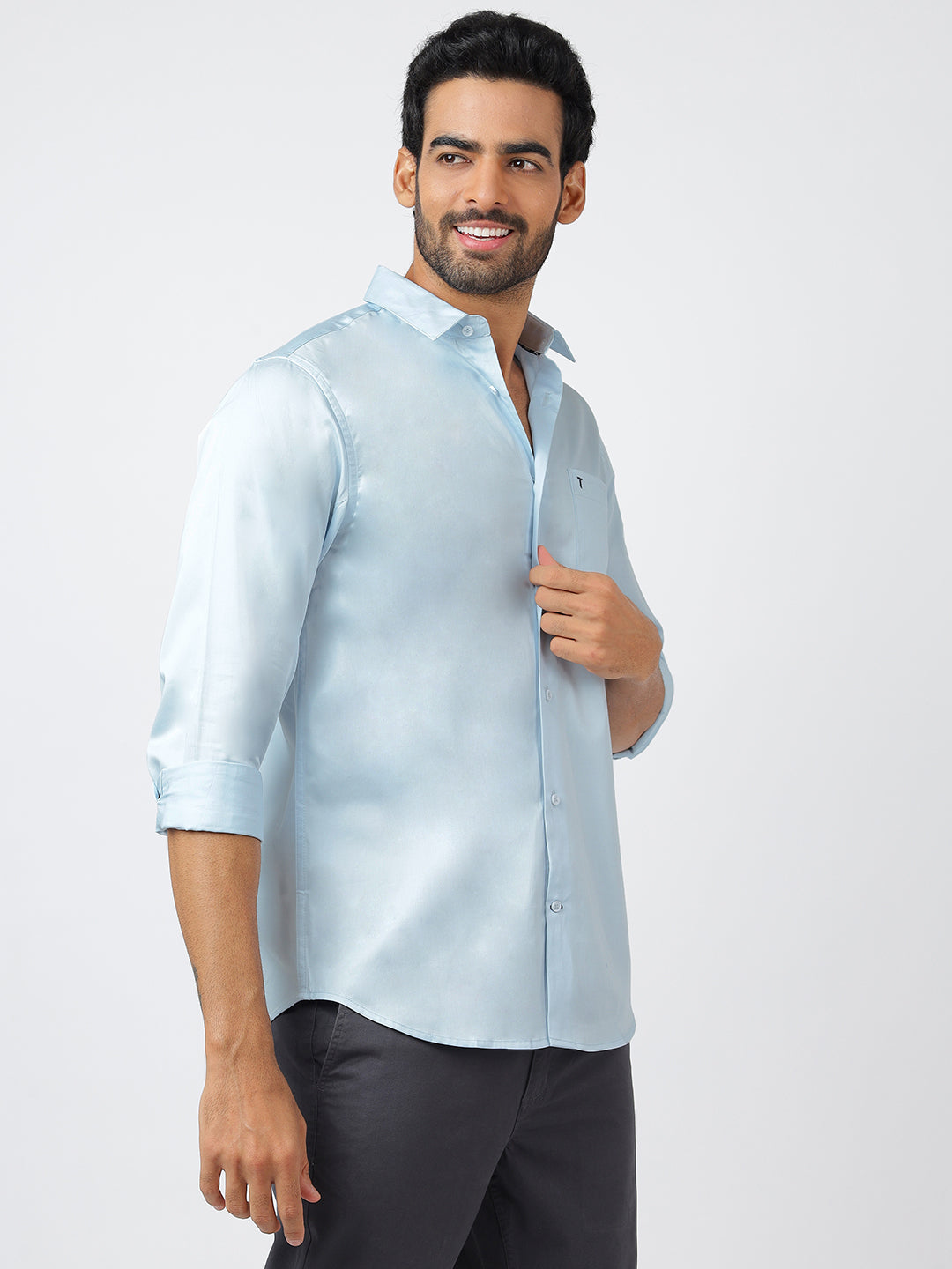 Solid Long Sleeves Pale Blue Satin (100% Cotton)