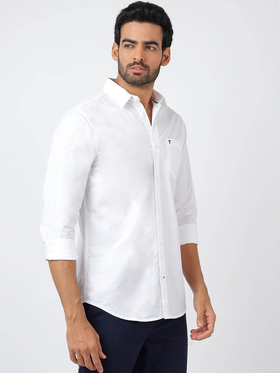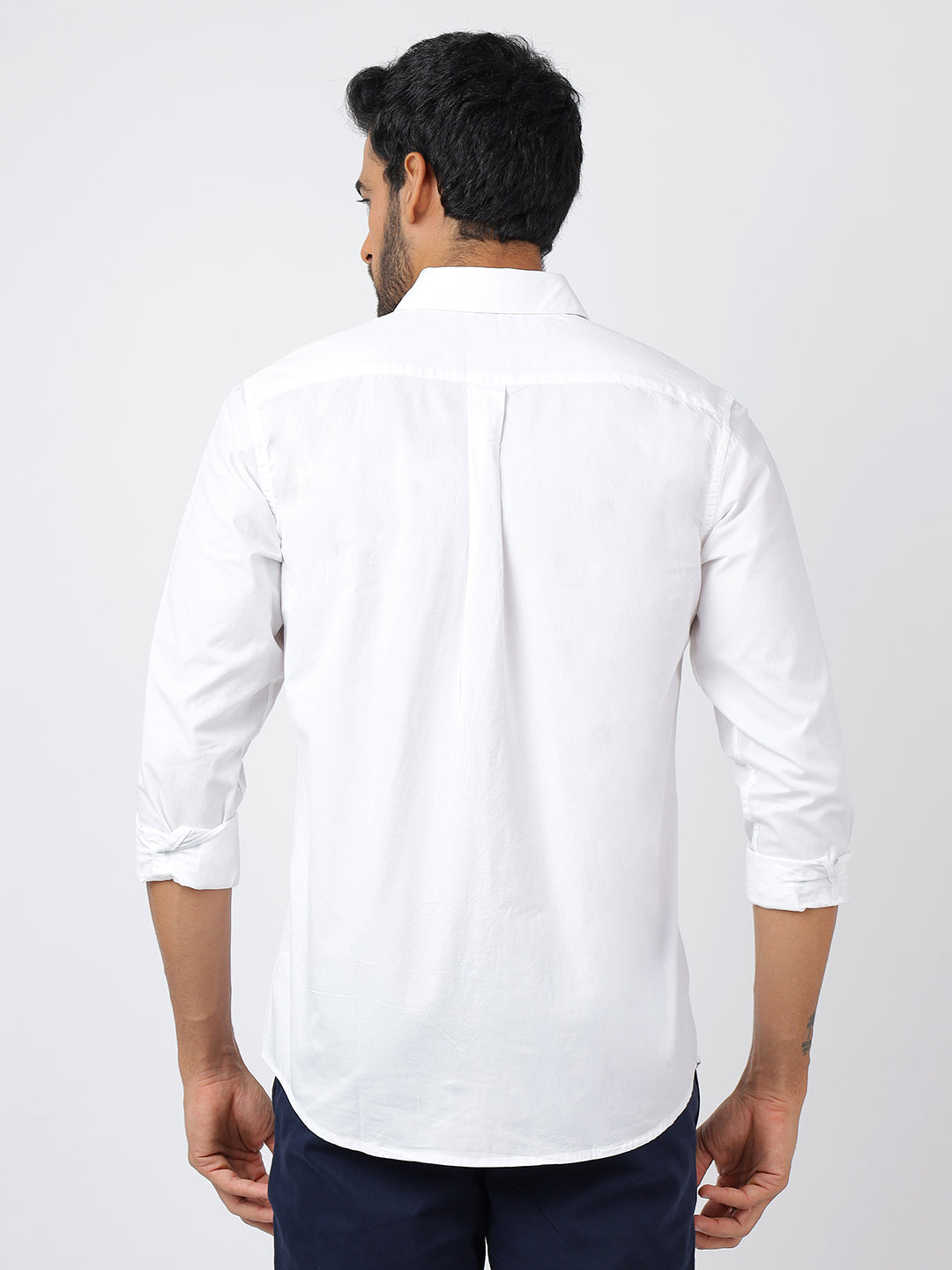 This sophisticated white long-sleeve shirt, crafted from 100% cotton, delivers exceptional comfort and breathability through its premium export-grade fabric. Its clean, minimalist design is perfect for both formal work environments and elegant evening affairs, making it a must-have for a polished and adaptable wardrobe.